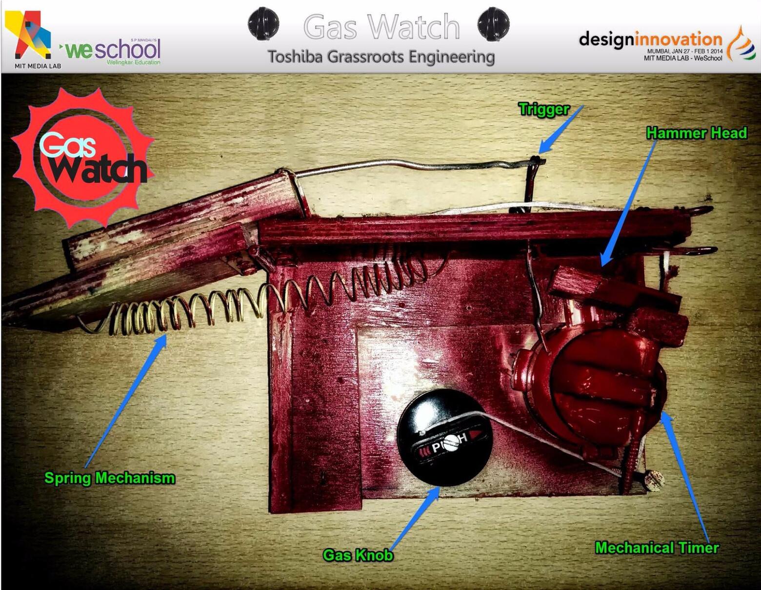 Made in association with MIT Media Labs, India. Gas Watch was designed as an answer to the needs of the people living in slums, where they needed to go out everyday to work after doing their own daily chores.